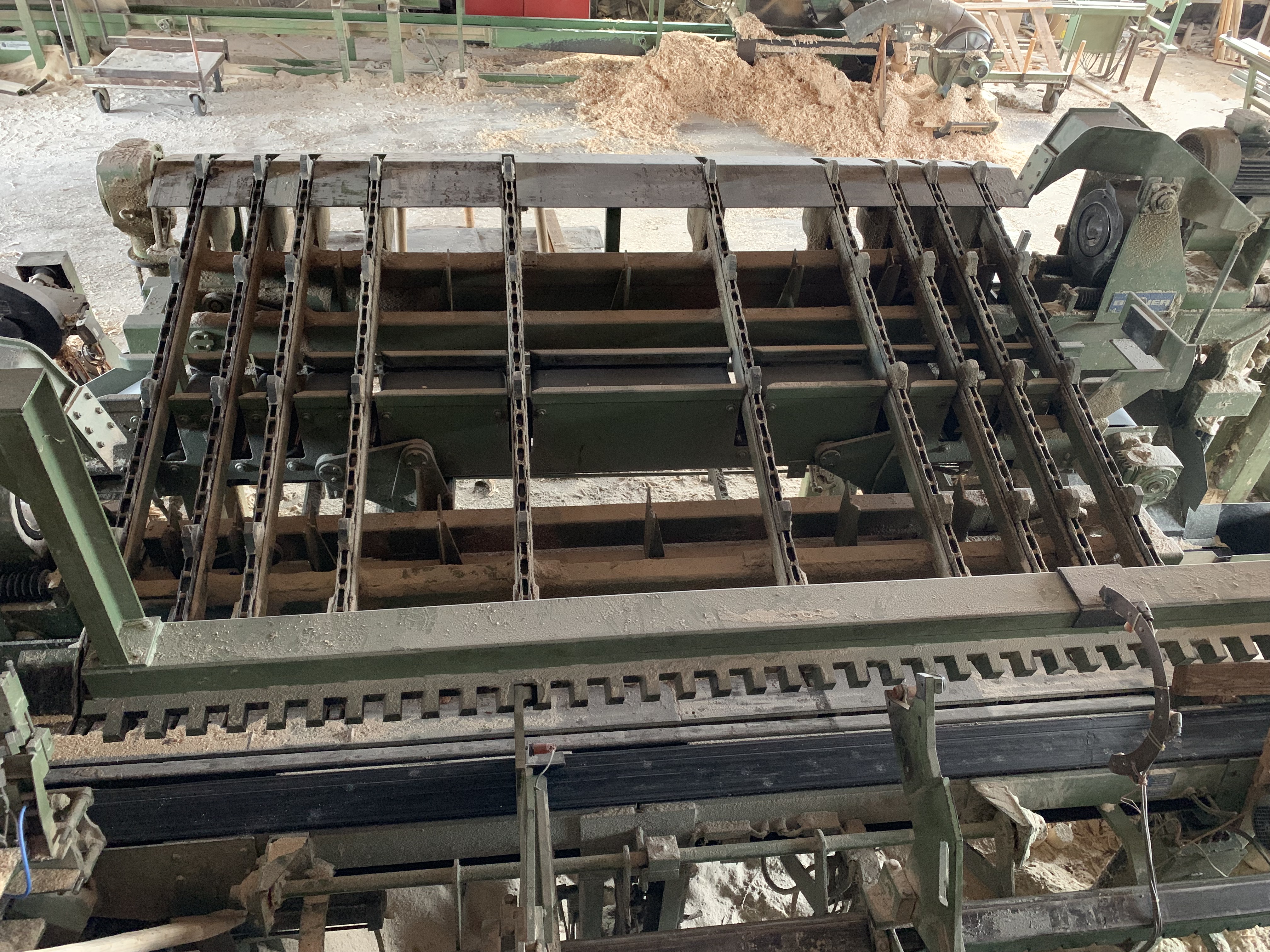 - Wood processor with chain conveyor,
